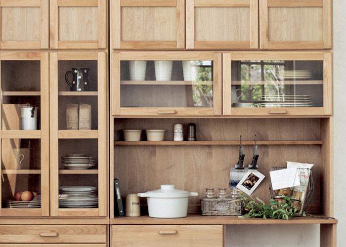 木本来の上質で滑らかな肌触りの素材感と、赤褐色の落ち着いた色合いが特徴のアルダー材。その特徴を活かすため、無駄な装飾をそぎ落とし、出来る限りシンプルなフォルムの家具づくりを目指しました。そこから生まれたのは、まるで10年も前から自分の生活のそばにあったような、日常にすっと優しく溶け込んでくれるような家具。それがVIBO(ヴィボ)シリーズです。毎日の暮らしにかかせないダイニング・キッチン空間をメインにシリーズを展開。素朴でシンプルな佇まいだからこそ作れる、モモ ナチュラルの目指す「暮らす人が主役のお部屋づくり」を叶えます。